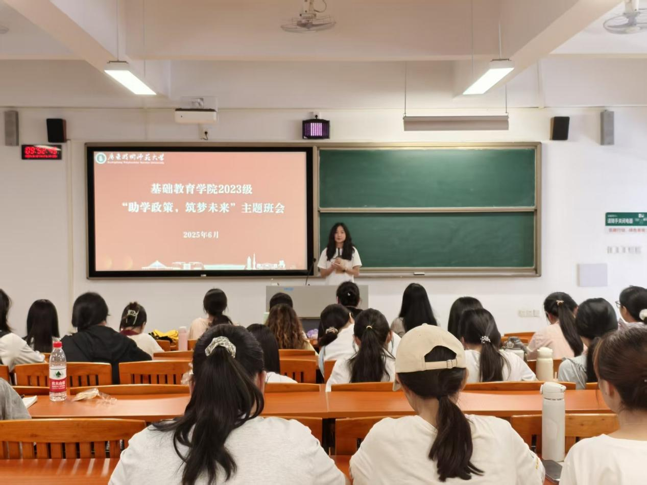此次班会有效搭建了助学政策与学生需求的沟通桥梁,让国家和学校的关怀如春风化雨般浸润学子心田。未来,基础教育学院将持续创新宣传形式,开展多样化的助学政策宣讲活动,助力更多学生在助学政策的支持下追逐梦想、成长成才。