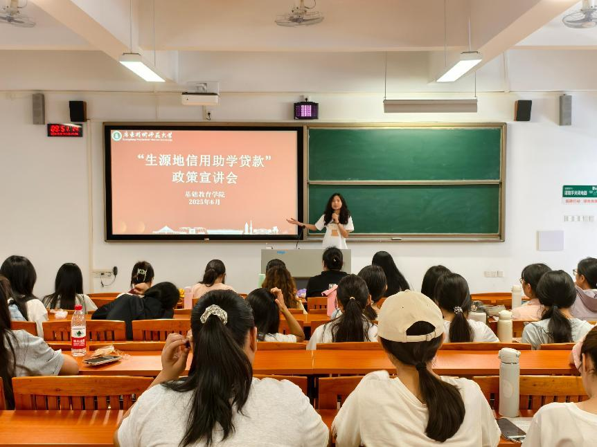 为积极响应《教育部办公厅关于切实做好2023年秋季学期高校学生资助工作的通知》(教财厅函〔2023〕13号)文件要求,助力学生全面深入了解生源地信用助学贷款政策,切实推动国家资助政策落地生根,助力我院学子顺利完成学业,基础教育学院于6月10日上午在唯实楼108教室举办了2025年生源地信用助学贷款专题宣讲会。本次活动由助学委员谢思佳同学担任主讲,2023级小学教育专业全体学生参加。