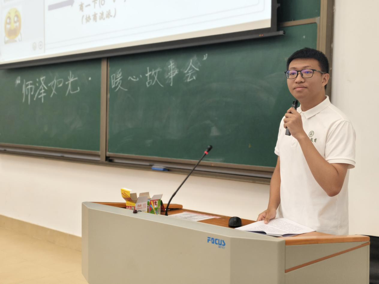 基础教育学院高度重视师德师风建设,为弘扬尊师重教优良传统,近日,由梧桐山下教育研学社承办的基础教育学院“师泽如光·暖心”故事会在博学大讲堂102举行。活动邀请张益升、姚沛希和唐雨滢三位学生代表,深情讲述“我与老师的故事”。学院专职辅导员李晓敏和2023级、2024级小学教育专业本科生一同参加此次分享会。