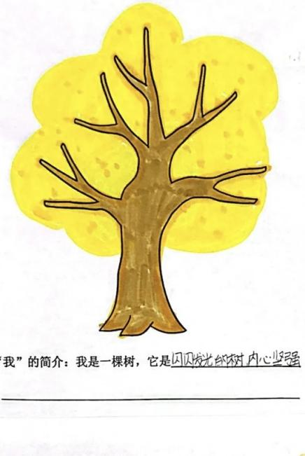 “我是一棵树,闪闪发光的树,内心坚强。”某同学在自己的作品上这样介绍,并表示在绘画在一定程度上帮助自己缓解了学业焦虑,而分享作品的过程则更让自己感受到被理解的喜悦。