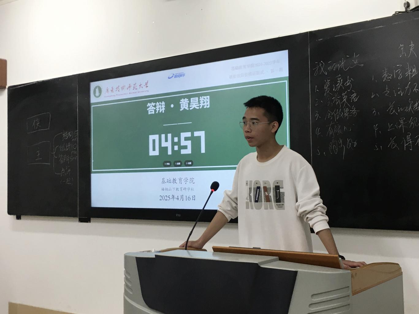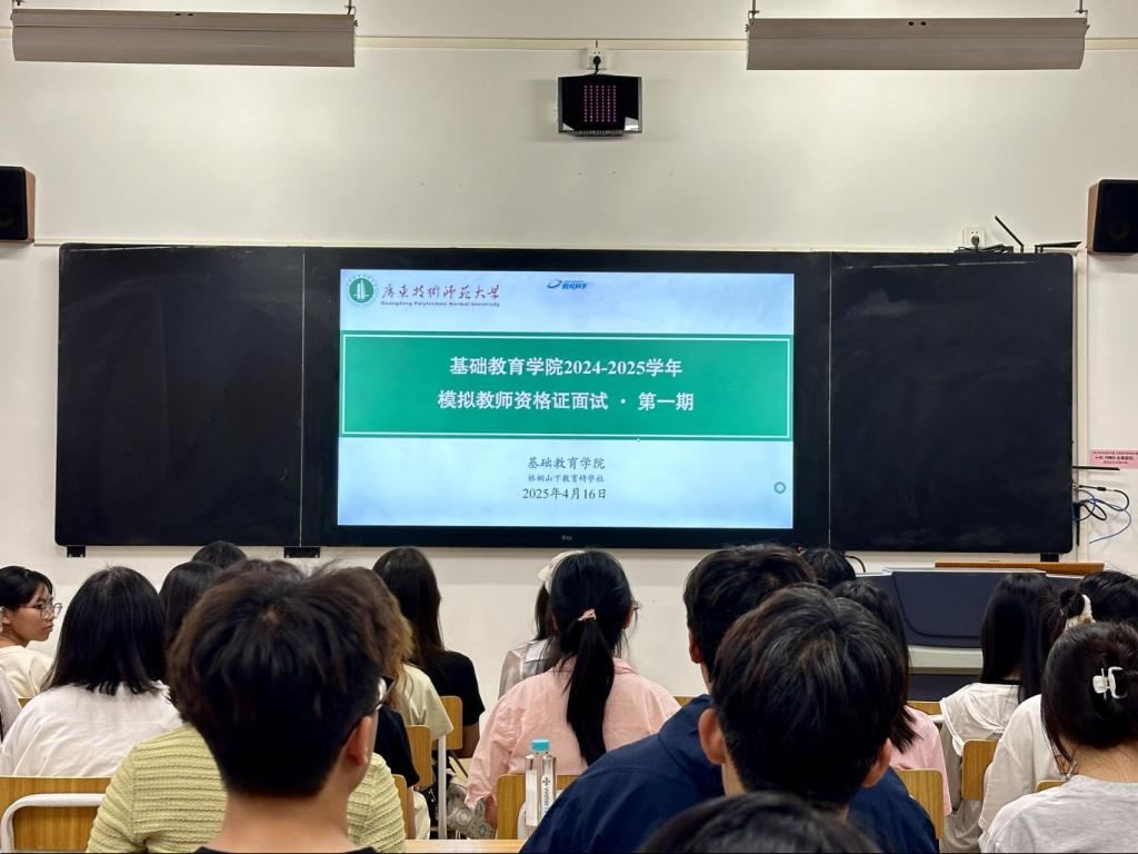 为帮助基础教育学院小学教育专业学生深入了解教师资格证面试的基本流程,提升在面试中的综合竞争力,4月16日晚,由梧桐山下教育研学社承办的基础教育学院第一期“热点交锋处,师者论道时”教师资格证模拟面试在唯实楼303举行。本次活动中,23级小学教育1班黄昊翔和23小学教育2班余冰雁两名同学担任考生,参与模拟面试,学院专职辅导员李晓敏和2023级小学教育专业本科生共同观看。