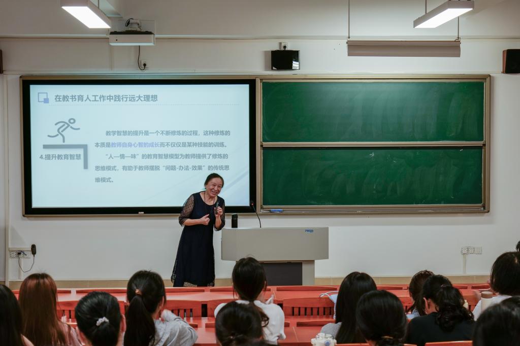 课上,陶教授从“新时代合格小学教师的角色定位、责任担当、发展之路”三方面,拓展并加深同学们对小学教师的理解。
