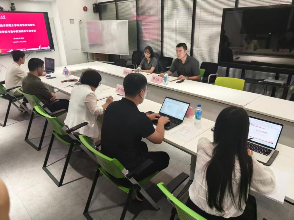 会上,吴水爱书记首先介绍学校办学成果,从全国文明校园创建、高校校园足球联赛全国冠军荣誉,到“技术性、师范性、民族性” 三大办学特色,展现了广师大的综合实力。随后,熊华军院长重点解读G-STAR帮扶模式:以 “管理协同、数智赋能、共同体建设、案例推广、任务驱动” 为核心,依托 “2+1+1” 专班机制与 “1+1+7” 对接模式,通过数智课程、数智课堂、数智研学等项目,结合乡村学校博士校长计划,已在河源、梅州等五市推进帮扶工作,打造出紫金县蓝塘镇中心小学等典型案例,获省教育厅高度认可。