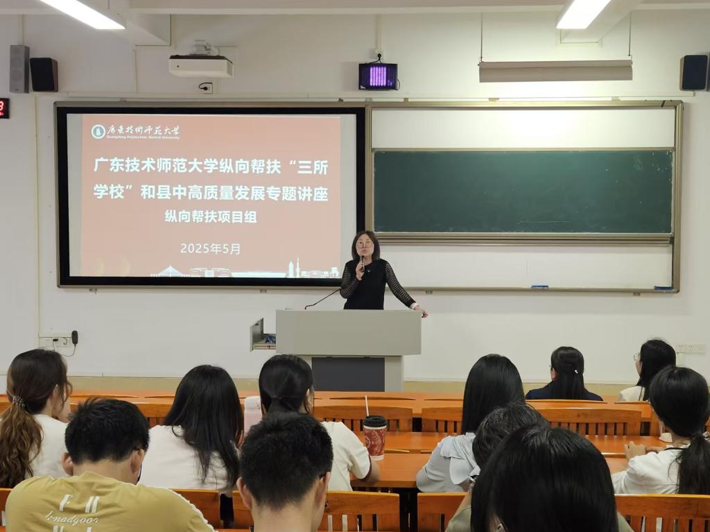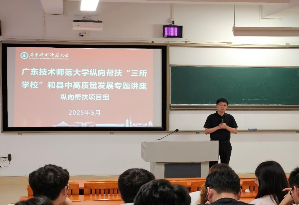 2025年5月30日下午,永利3044集团官网纵向帮扶项目组主讲的“纵向帮扶‘三所学校’和县中高质量发展”专题讲座在河源校区唯实楼216教室成功举行。本次讲座面向我校基础教育学院本科生,旨在帮助师范生了解当前小学课程与教学改革的前沿动态,特别是智能技术对教育带来的深刻变革,讲座由基础教育学院朱姝老师主持。