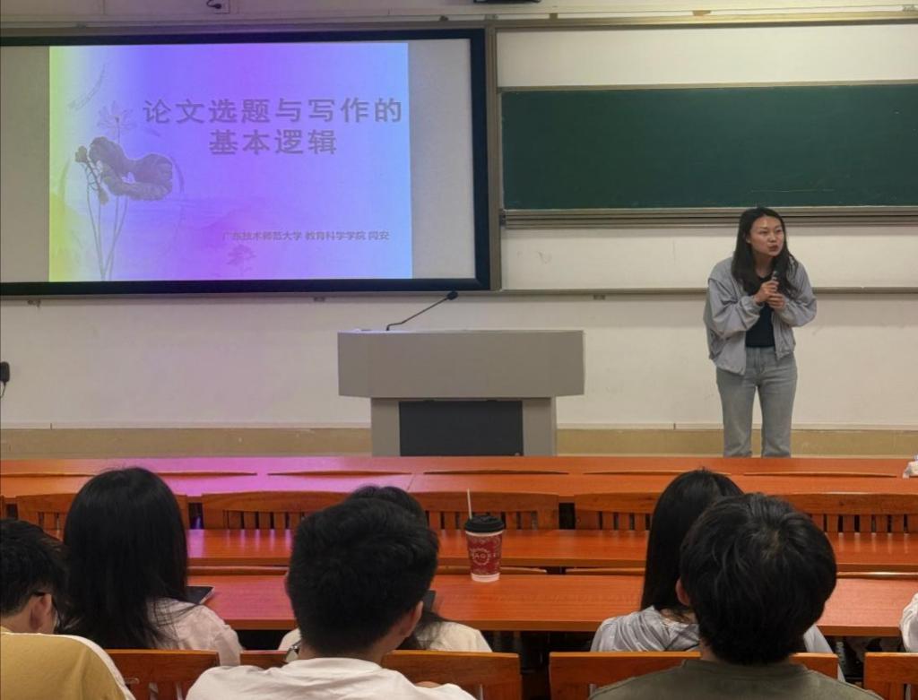 闫安博士作了主题为《论文选题与写作的基本逻辑》报告。该专题分享了论文选题需遵循的价值、能力与空白三大原则,强调了论文写作对教育教学实践、学科交叉领域的挖掘研究,同时帮助学生理清如何结合自身能力范围与文献空白点,撰写论文,避免选题空泛或脱离实际。