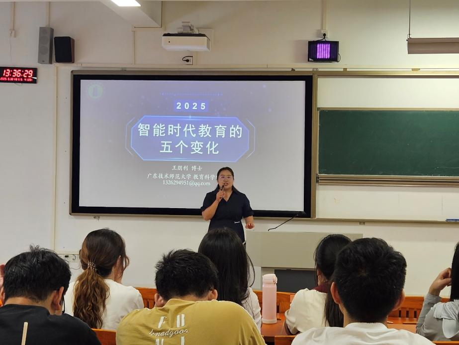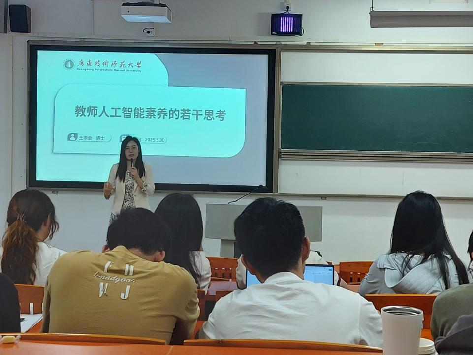 王孝金副博士作了主题为《教师人工智能素养的若干思考》报告。该专题围绕智能时代教师人工智能素养的培养展开,阐述其面临的挑战、概念、内涵。讲座从理念革新、能力塑造、职业发展等多个维度,为师范生提供了应对智能教育时代挑战的关键指引。还帮助师范生打破对人工智能的认知误区,明确其并非教育的替代者,而是辅助教学、促进教育公平的重要工具,从而树立“人机协同育人” 的正确理念。