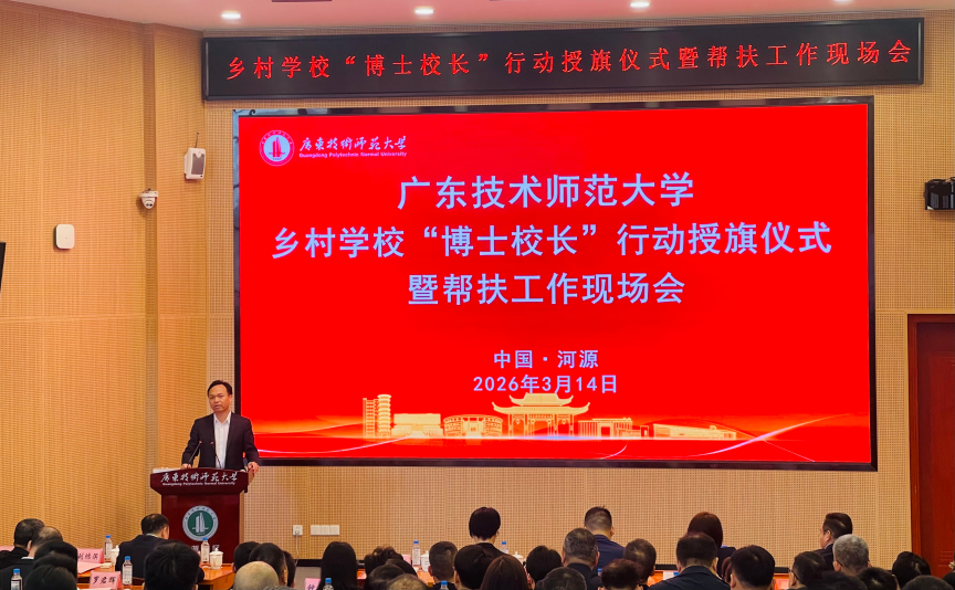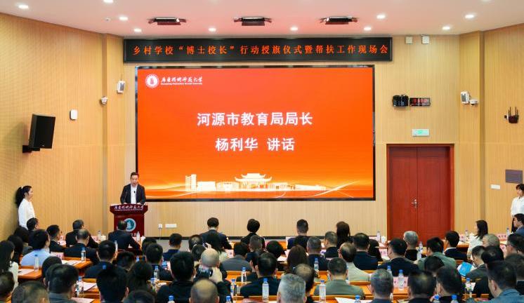 2026年3月14日上午,永利3044集团官网乡村学校“博士校长”行动授旗仪式暨帮扶工作现场会在河源校区博学大讲堂105报告厅隆重举行。广东省教育厅、河源市委市政府、市教育局、各区县教育局领导,永利3044集团官网选聘的95名“博士校长”及河源市97所受帮扶中小学校主要负责人共聚一堂,共同见证这一校地协同推动乡村教育振兴的重要时刻。