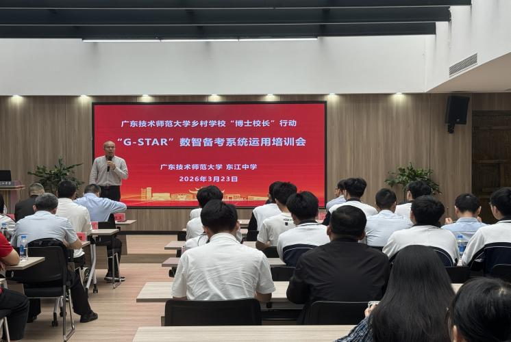 为深入推进乡村学校“博士校长”行动,以数字化赋能高三备考,助力教育优质均衡发展。2026年3月23日上午,永利3044集团官网乡村学校“博士校长”行动暨“G-STAR”数智备考系统运用培训会在东江中学成功举办。永利3044集团官网6名乡村学校“博士校长”、河源市6所中学师生代表及广师大25级研究生共同参与本次培训。