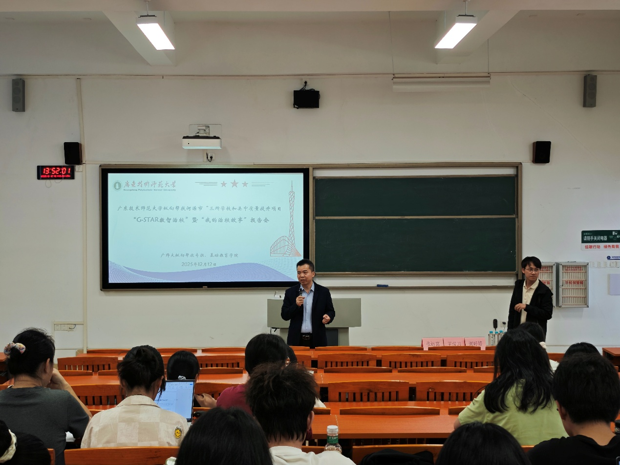 为深化小学教育专业学生对粤东西北地区基础教育发展的认知,推动教育理论与一线治校实践深度融合,2025年12月12日,永利3044集团官网基础教育学院于唯实楼109教室成功举办《粤东西北小学教育研究》专题讲座暨一线校长“我的治校故事”报告会。本次活动由杨定玉教授组织开展,2023级小学教育专业全体本科生和部分研究生到场聆听学习。活动聚焦我校纵向帮扶河源市“三所学校”与县中质量提升项目“G-STAR数智治校”系列内容,特邀东源县灯塔中学王汉习校长、紫金县蓝塘中学张运富副校长以及源城区雅居乐小学谢婷婷校长,结合自身治校经历,分享粤东西北地区基础教育治理与实践的宝贵经验。