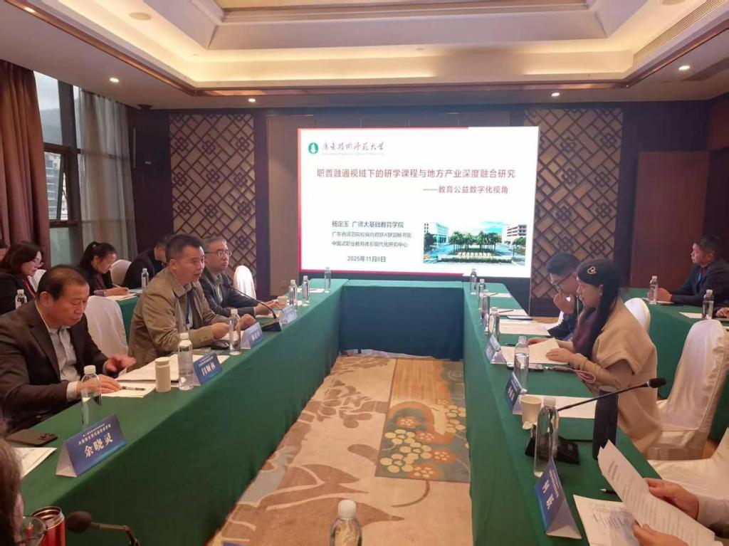 会议通过主旨报告、实地观摩与分组讨论,探索大数据与人工智能技术在劳动教育评价中的应用路径。在会议分组讨论环节,杨定玉教授作了题为《职普融通视域下的研学课程与地方产业深度融合研究——教育公益数字化视角》的主题报告。报告从国家政策引领入手,系统分析了职普融通的核心内涵与实施路径,并结合广东省河源市产业集群案例,提出了以“职业认知、职业体验、职业对话、职业评价”为核心的研学课程本土化设计模式。