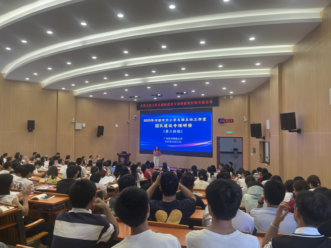 为深入贯彻落实新时代人才培养要求,助力我院师范生提升教学实践能力,搭建学习交流平台,2025年10月18日,河源市中小学名班主任团队建设专项研修班会议在我校河源校区召开,基础教育学院组织本科生参与本次会议进行旁听,河源市名班主任团队代表50人以及小学教育全体本科生参加了本次会议。