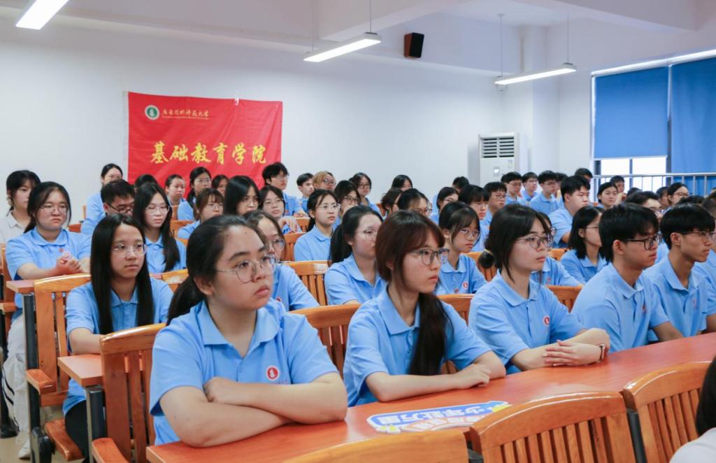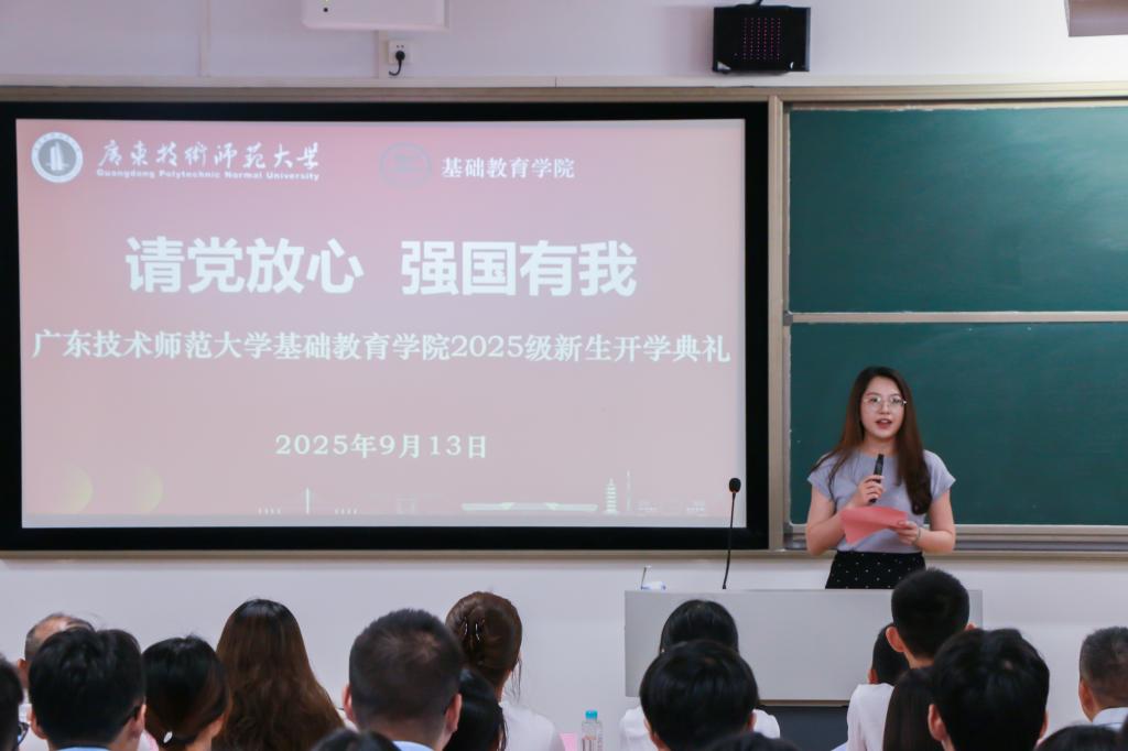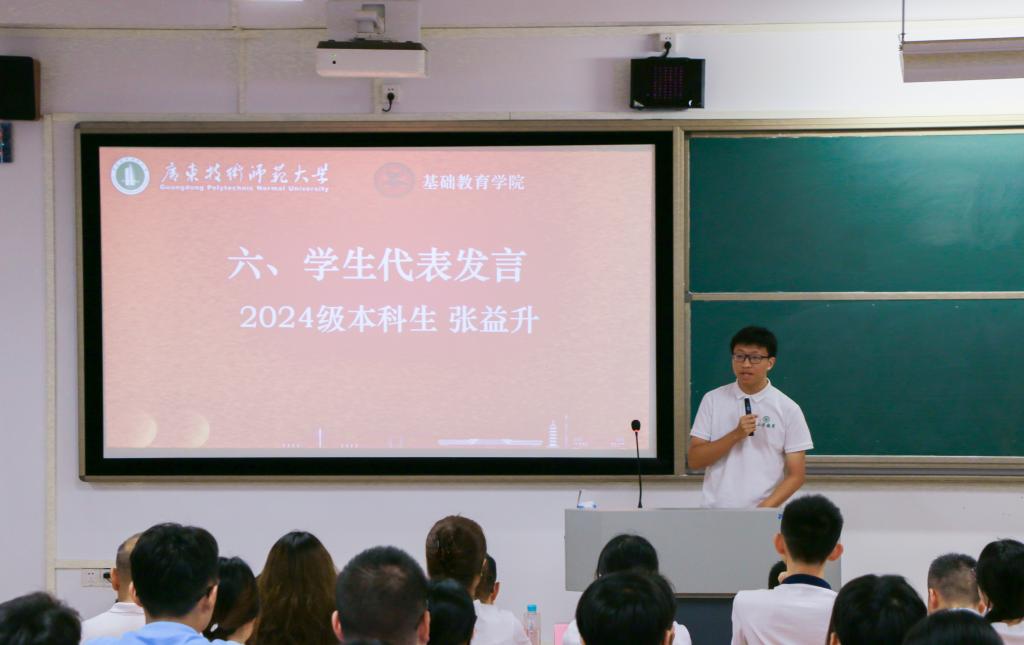 2025级本科生欧阳淑怡、研究生周丽芬作为新生代表则表态,将以饱满热情投入学习研究,为基础教育事业贡献力量。