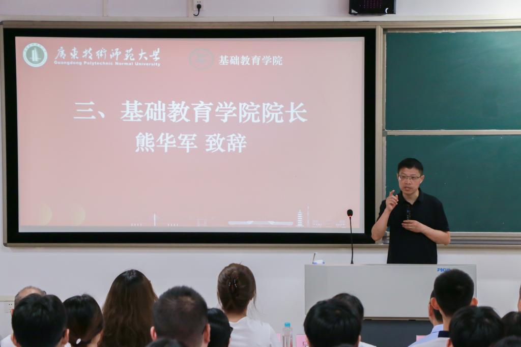 秋意正浓,青春飞扬。2025年9月13日上午,基础教育学院2025级新生开学典礼于唯实楼315隆重拉开帷幕。基础教育学院书记吴水爱、学院主要负责人熊华军教授、河源校区管委会副主任李冲,学院全体教师以及2025级全体本科生、研究生齐聚一堂。典礼由专职辅导员陈王光主持,现场座无虚席,青春气息与热切期盼相互交融,尽显新学期蓬勃气象。