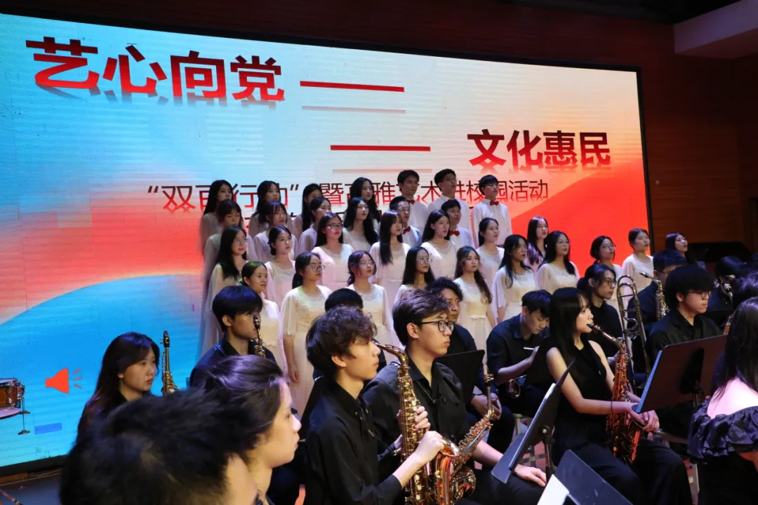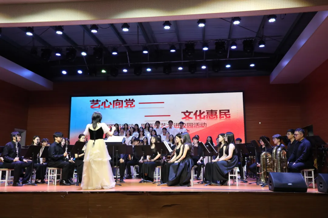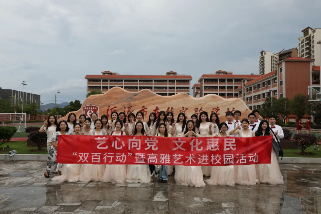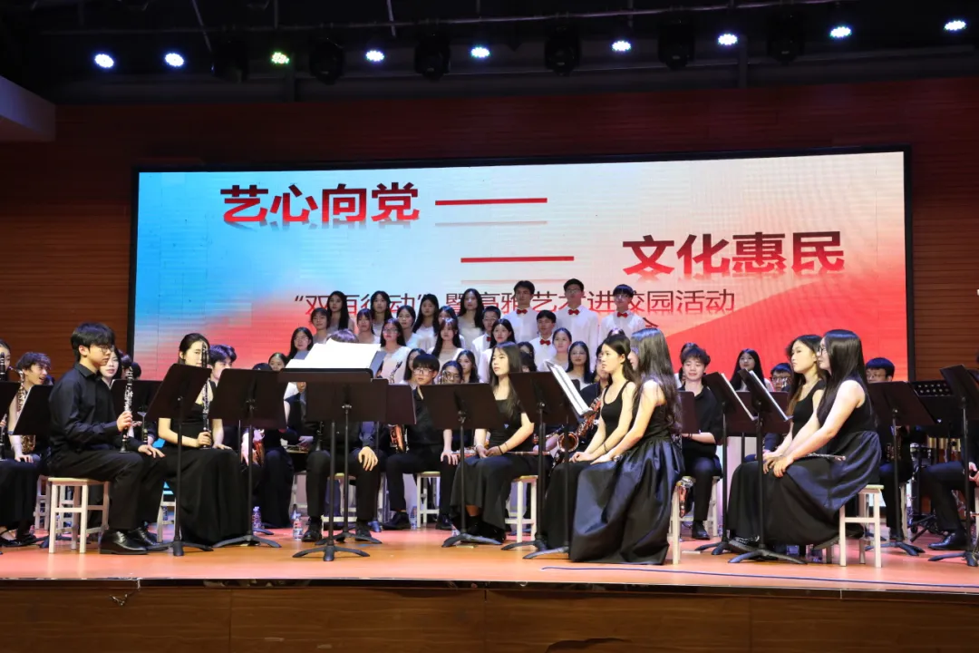 6月12日,“艺心向党 文化惠民”双百行动暨高雅艺术进校园活动交响管乐团专场音乐会在河源东华实验学校演播厅举办。