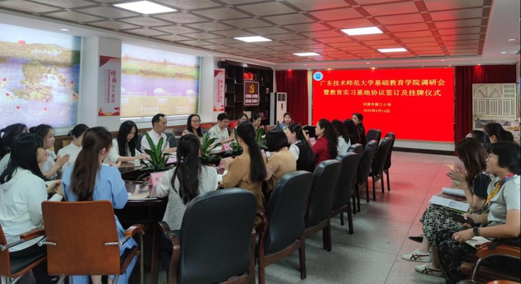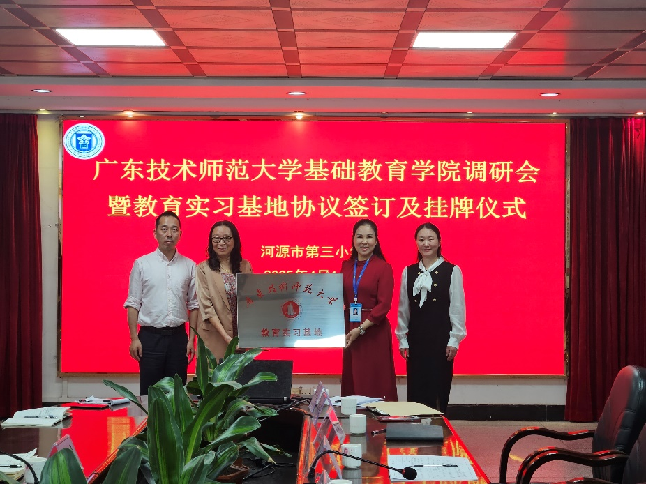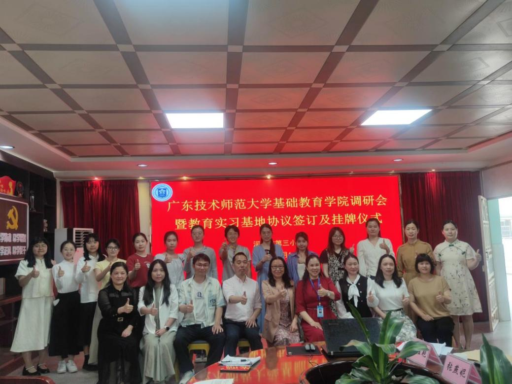 4月16日下午,基础教育学院院长陶红教授,河源校区管委会副主任李冲等人带领2024级小学教育专业10名研究生前往河源市第三小学开展调研活动。同学们深入真实的教学课堂进行观摩,沉浸式感受一线教师的教学过程与魅力,并共同见证基础教育学院教育实习基地协议签订及挂牌这一重要时刻。