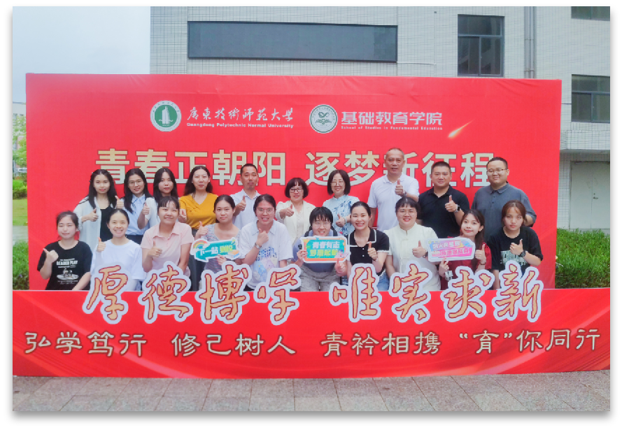 2024年9月,基础教育学院迎来2024级小学教育专业首批研究生10人,这是基础教育学院首批全日制培养研究生,也是河源史上第一批全日制培养研究生,填补了河源市无培养全日制研究生学校的空白,开启了学生可在河源本硕连读的时代。