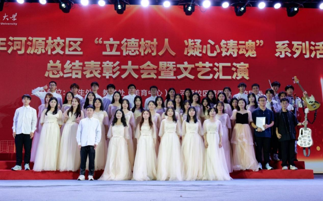 “我喜欢”合唱团成员共48人,团队成员以周为单位定期排练,并在2024年河源校区“立德树人 凝心铸魂”系列活动总结表彰大会暨文艺汇演中,和来自汽车与交通工程学院、财经学院、数字创意学院、音乐学院的同学们共同演绎《知足》《在成长中自强不息》曲目。