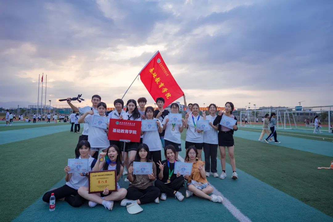 学院高度重视学生健康成长和全面发展,以体育评价改革为切入点、以身心健康为突破口,促进五育融合和基础教育高质量发展,让体育锻炼逐渐成为学生发展路上的“必修课”。2024年校运会中,学院参赛健儿们迎难而上、超越自我,运动员们以昂扬向上的姿态展现着力量、技巧和激情,他们的每一个动作、每一个表情,都充满了力量和美感;他们的每一次尝试、每一次突破,都是对自我的超越、对梦想的追求。他们的拼搏和汗水,展现了坚韧和毅力,最终基础教育学院在参赛的18个学院中荣获女子甲组团体第4名,在2023年女子甲组团体第8名的基础上取得突破,再创佳绩!