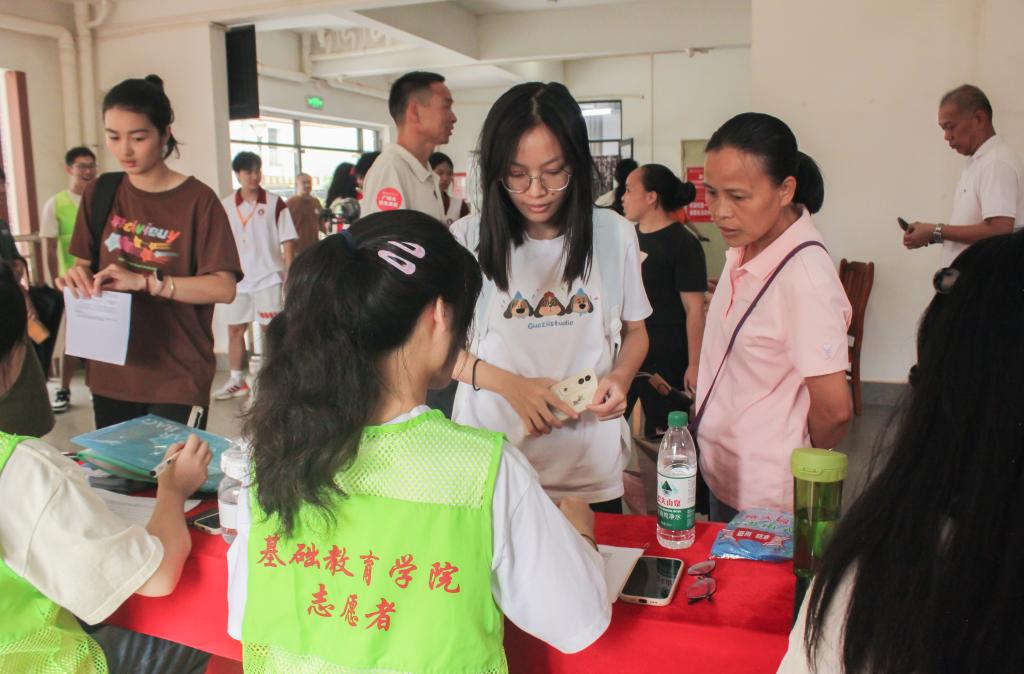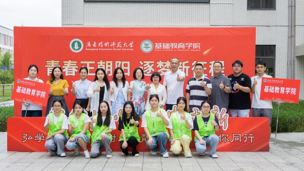 学校副校长苏晖、河源校区党委书记罗君辉一行莅临基础教育学院迎新大本营,对学院迎新工作的有序开展给予高度肯定,并在基础教育学院迎新展板前,与学院领导、教师、2024级新生合影留念,共同记录下这一难忘时刻。