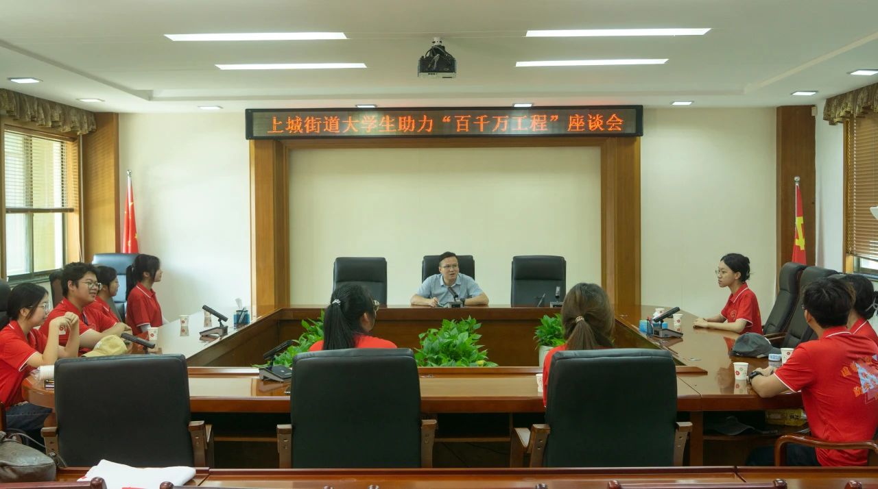 上城街道对宣讲团的到来表示诚挚欢迎,为促进进一步交流与合作,双方在上城街道办事处会议室举行了上城街道大学生助力“百千万工程”的座谈会,会议由上城街道团工委书记甘浪浩主持。宣讲团成员认真倾听上城街道方的相关建议,并据此对后续的工作任务进行了及时、灵活的调整与优化。
