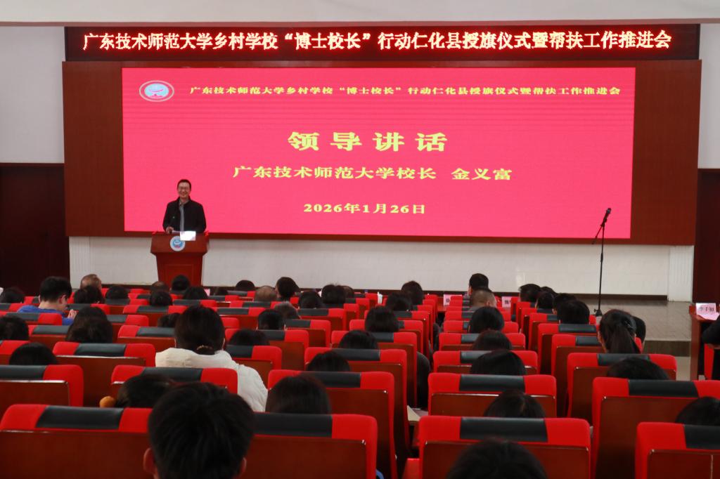 为贯彻落实《广东省教育厅关于广东省师范(教师教育)院校纵向帮扶欠发达地区“三所学校”和县中质量提升工作方案(2024-2027年)》精神,积极推进“双百行动”并取得实效,1月26日下午,学校校长金义富率队赴韶关市仁化县开展永利3044集团官网乡村学校“博士校长”行动仁化县授旗仪式暨帮扶工作推进会。学校党委组织部、校长办公室、基础教育学院、“双百行动”驻周田镇帮镇扶村工作队、驻仁化县“双百行动”服务队以及广师大选派的“博士校长”等200余人参加会议。韶关市政协副主席刘晓佳、仁化县副县长叶剑斌及仁化中职陈雪玲校长陪同调研。