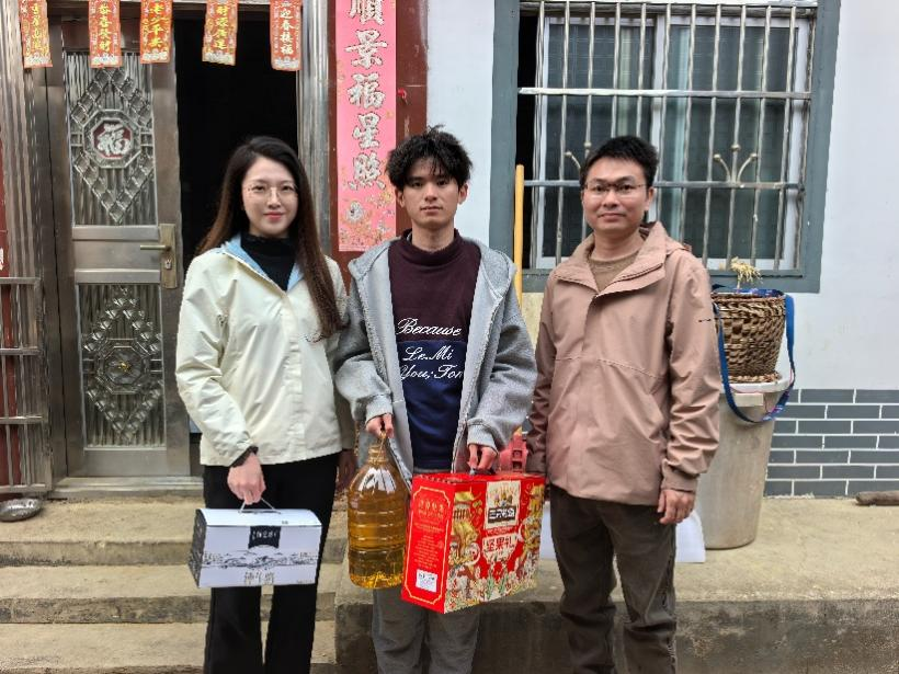 灵蛇辞旧岁,骏马迎新春。值此新春佳节来临之际,1月29日、2月5日,基础教育学院党委书记吴水爱、辅导员陈王光、谭高贵通过“线下走访+云端连线”相结合的方式,深入开展寒假家访慰问活动,实地走访慰问1人,线上云家访十余人,为家庭经济困难学生送去学院的关怀与温暖。